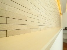 このカウンター部分の壁面には調湿・消臭効果のあるエコカラットが使われています。
