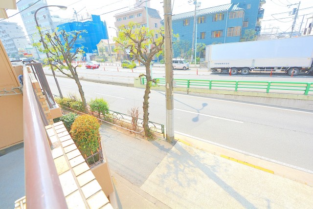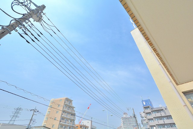 2階からの眺望です。周囲には遮られるものもなく青空が望めます!目の前は環七通りに面しています。音が気になる方もいらっしゃるかと思いますので現地の見学をオススメします。