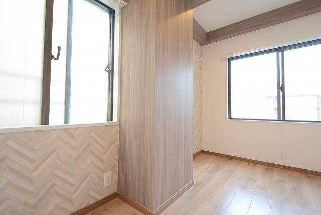 約5.6帖のお隣の洋室は約6.1帖の洋室。大きな物もすっぽり仕舞えるウォークインクローゼットがついています。成長するにつれて増えるお子様の荷物も大型収納があると安心ですね。