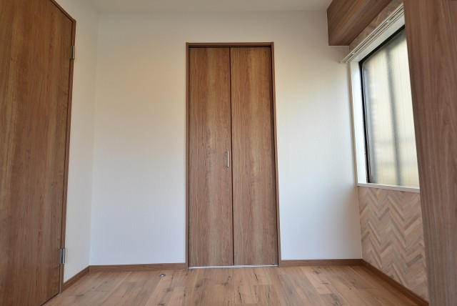 廊下を進んで右側の扉は約5.6帖の洋室。幅の広いクローゼットが設けられています。