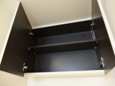 吊り棚にはペーパーのストックや掃除用具等を仕舞っておけます。