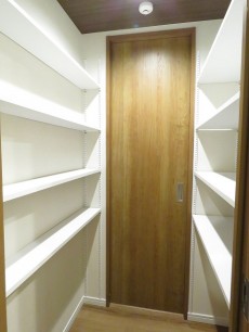 洗面室の斜め向かいにはこんな広々とした収納スペースが設けられています。