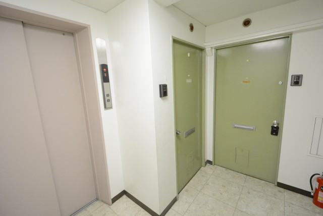 エレベーターを降りるとエレベーターホールがあり、玄関ドアが並んでました。