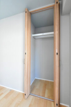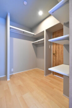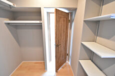 ご家族みんなで使う収納になります。これなら洗濯物を各部屋のクローゼットに配り歩く手間もなく家事の時短に役立ちますね。広さも十分なのでスーツケースやシーズンオフの季節家電など置いておくことも可能です。