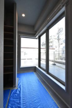 ファミリークロークから一度のぞいたお部屋です。南西、北西の二面採光。どちらも外はルーフバルコニーになっています。