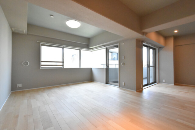 お部屋は2階角部屋、専有面積102.54㎡の2LDK。100㎡超えながら2LDKと余裕のある間取りですね。ご家族が増えてもリフォームなどで対応しやすい、永くお住まいいただけるお部屋です。