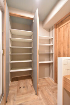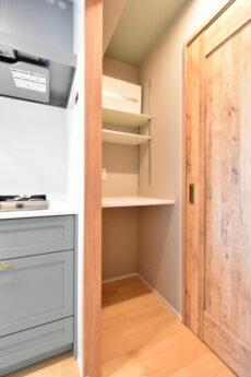 キッチン奥にはちょっとしたスペースがあり、パントリーや作業スペースとして使えます。