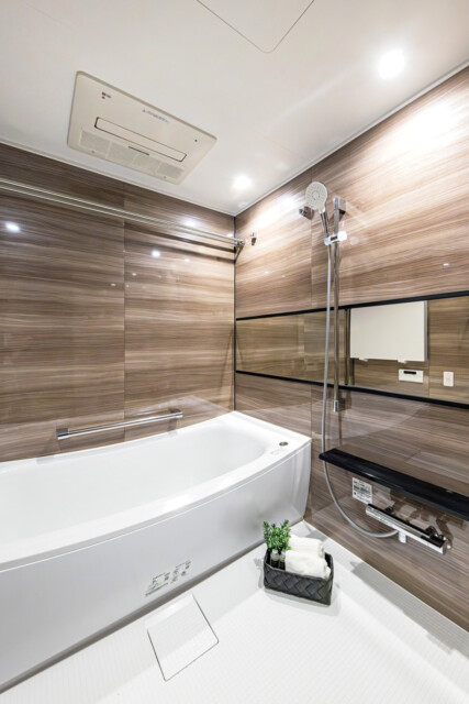 浴室換気乾燥機や追い焚き機能などの便利機能も完備。ボタンひとつでお風呂を沸かしてくれるのってほんとに便利ですよね!