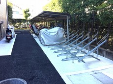建物裏手には、駐輪場&駐車場があります。残念ながら駐車場は現在空無しです。