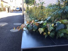 こちらがマンションのエントランス。エントランスは数段ですが階段をおりるかたちになっています。