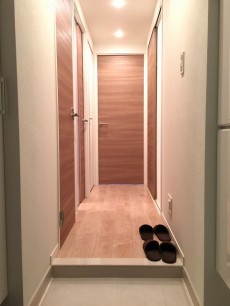 玄関を開けると、生まれ変わったばかりのキレイなお部屋が出迎えてくれました☆玄関照明は人感センサーになっているので節電はもちろん夜間のお帰りの際も便利です。