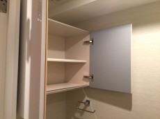 廊下あがって右手にはウォシュレット付きのトイレです。上部に扉付の収納があるので、ストック品の収納や消臭剤を置くスペースとして利用してみて下さい♥♡