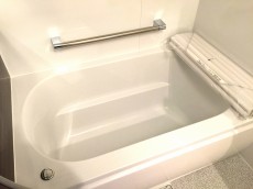 ゆっくり大きなバスタブにつかって疲れを癒せそうです♪♪ミラー横にもシャンプーなどのボトルもキレイに並べて置ける棚があり、清潔感のある空間を保つことができます♪♪