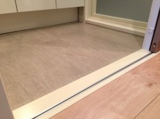 廊下反対側には、洗面室&バスルームがあります。段差も無くて移動もスムーズです。正面に洗面台、右手にバスルームの配置です。