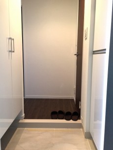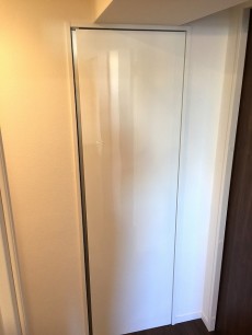 玄関左手には、光沢のあるホワイトの扉が魅力的なシューズボックス☆トールサイズですが、横幅が少し狭いです。