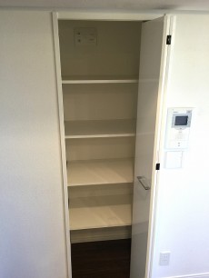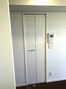リビングダイニングの収納です。普段使いの物などはこちらにすべて収納できそうです♪♪急なお客様の時でも生活感を隠せてgood☆クローゼットのお隣にはTVモニター付きのインターフォンが設置されています。セキュリティもバッチリ♫