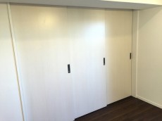 廊下左手に真っ白な扉付きの収納があります。収納が大きいと嬉しいですね。