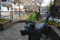 緑道の入口にはサザエさんではなく・・・強そうな犬の像があります。