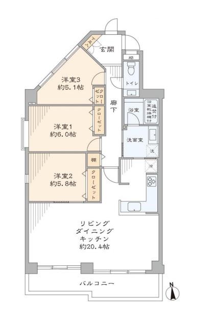 リビングダイニングキッチンは、約20.4帖(´∀`*)南側の壁一面が窓になっていて、光に包まれたゆったり広々リビングです♪♪家族の集まるお部屋にぴったりです。