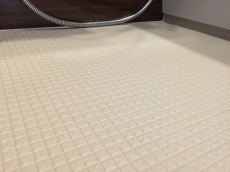 ミラー横にシャンプーなどのボトルもキレイに並べて置ける棚があり、清潔感のある空間を保つことができます♪♪モザイクパターンの床は、水はけが良く、すばやく乾燥します。