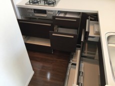 キッチンは上下に収納があり調理道具がたくさん入れられそうです♪シンク下の収納は、スライド式なのでキッチングッズの収納も楽々 (●´∀`)配管を気にせず収納できるので大容量。