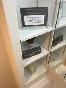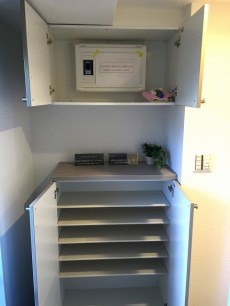 棚が可動式になっていますので、ブーツの収納もOK♪♪シューズボックスはセパレート型で、カウンター部分はちょうどよいディスプレイスペース。インテリアや植物などを置けば華やいだ雰囲気に変わりそうです♪♪