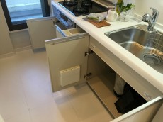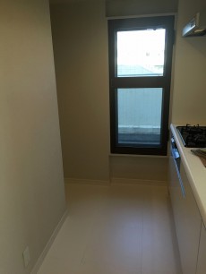 キッチンは独立タイプで広々としていて、冷蔵庫以外にもキャビネットなども置けそうなスペースがあります。