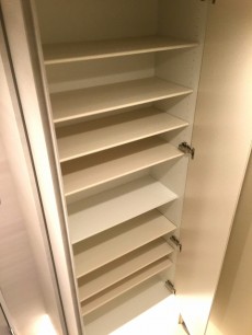 玄関の右側にはシューズボックスがあります。 天井まであるトールサイズで大容量☆可動式の棚なので、靴のサイズに合わせてご自由にアレンジしてください。ブーツの収納も大丈夫です(´∀`●)