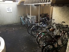 オートロックを抜けて廊下を進むと右手に駐輪場があります。
