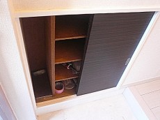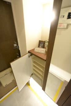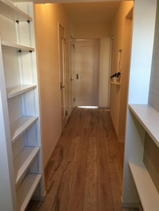 シューズBOXは左側にあり、可動棚で高さ調節ができます。