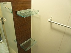 シャンプーなどのボトルもキレイに並べて置ける棚があり、清潔感のある空間を保てますね◎