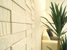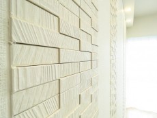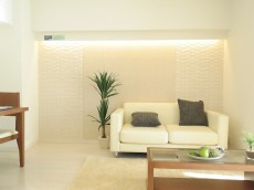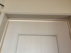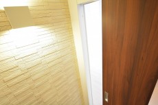 廊下の突き当たりはエコカラットと間接照明がアクセント。