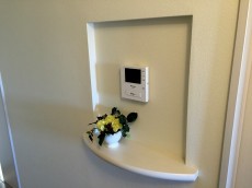 玄関ドア横にはテレビモニター付きインターホンが設置されていて、お部屋の中から訪問者を確認する事が出来ます。映像で確認してから応対するかを決められるのがいいですね。