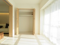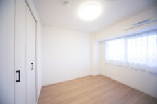 こちらは約4.7帖の洋室1。LDKを通らずに出入りが出来る独立性の高いお部屋です。窓は北向きですが意外と明るいんですね。収納は間口が広く使いやすそうなクローゼット。