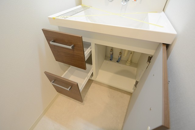 鏡の裏と洗面ボウルの下が収納になっております。歯ブラシから洗顔フォームまでゴチャゴチャ散らかりがちな洗面まわりの物はこちらにお仕舞いただけます♪♪