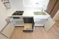 調理台下は収納と食器洗浄乾燥機。食洗機憧れます!洗い物はお任せして、食後はのんびり過ごしちゃいましょう♬