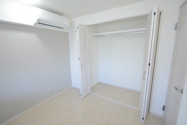 こちらは約5.5帖の洋室2。リビングと南向きのバルコニーに面した明るいお部屋です。収納はウォークインクローゼット!L字型にハンガーパイプが付けられた大きな収納で、衣類だけでなくスーツケースなどの嵩張る物を入れておくのにも使えそうです。