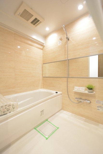 モザイクパターンの床は、すばやく乾燥、楽々お手入れ♪♪バスルームには、暖房・涼風・換気・衣類乾燥の設備があります。カビの防止にも、雨の日のお洗濯にも大活躍の機能です(o´∀`ノ