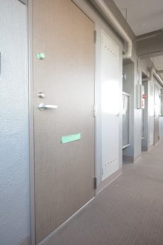 10階までエレベーターで上がり、眺めのいい外廊下を進むとお部屋に到着です。