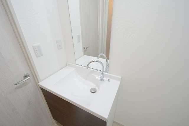 右側に洗面台があります。