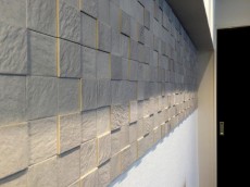 電話台として使ったり、インテリアを楽しんだりできるニッチカウンター。下は収納になっています。石を積んだようなアクセントウォールは、間接照明によって凹凸が強調されていい味を出していますね(^^♪