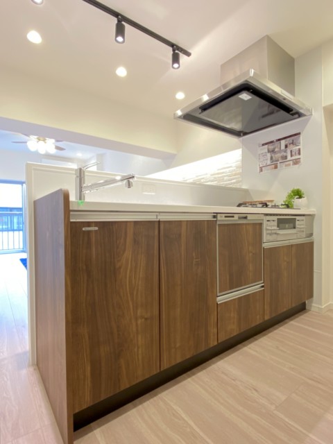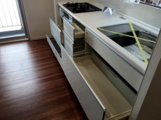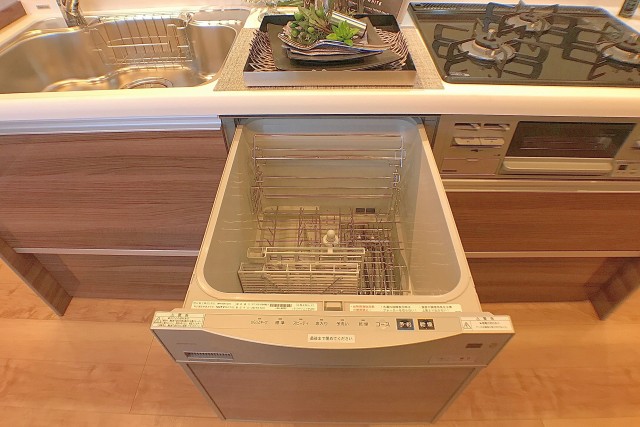 調理台下には収納と食器洗浄乾燥機。食洗機いいですよね~ もう、手荒れに悩むこともありません。なにより、みんなで食後をのんびり過ごせるのが一番です(*´▽`*)