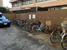 1Fエントランス奥には、駐車場と駐輪場があります。