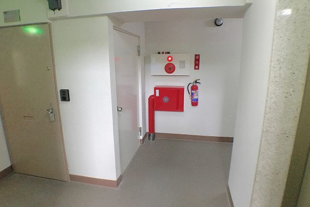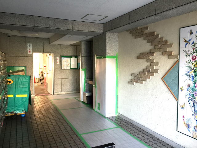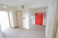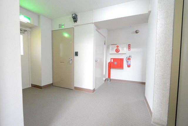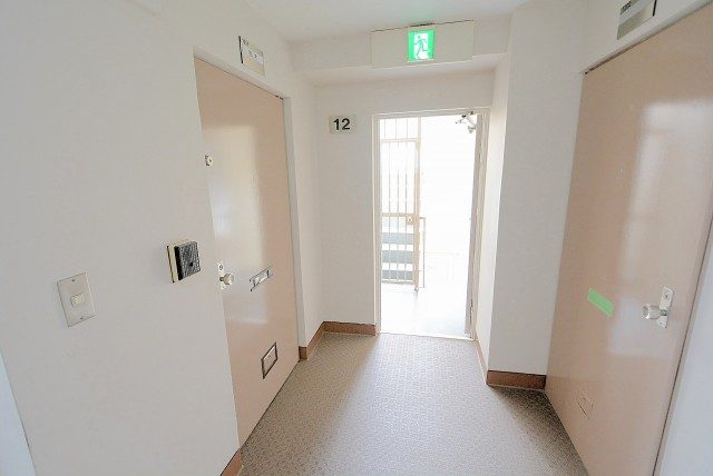 エレベーターを4階で降りて、内廊下を進むとお部屋に到着です。内廊下は雨風に影響されず、防犯面やプライバシーの面でも安心ですね。