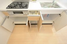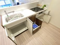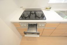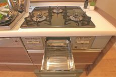 コンロは3口、グリルも付いて調理器具も充実。グリルって魚で使う事が多いですが、他の素材にも使えますのでどんどん使っていきましょう。レシピもたくさんありますから、是非一度調べてみて下さい。