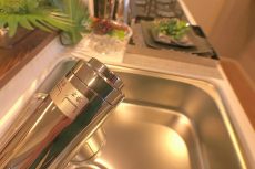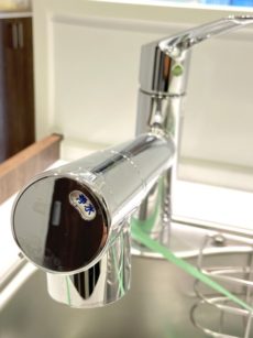 水栓は浄水機能付きシャワー水栓。お米を研ぐ時はミネラルウォーターを使った方がいいらしいのですが、なかなか難しいですよね。切り替えるだけで美味しいお水が出てくるので、これなら気軽に使う事が出来そうです。