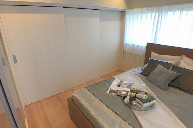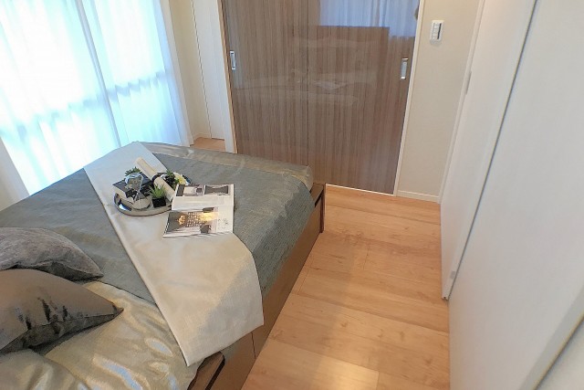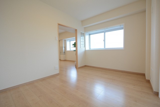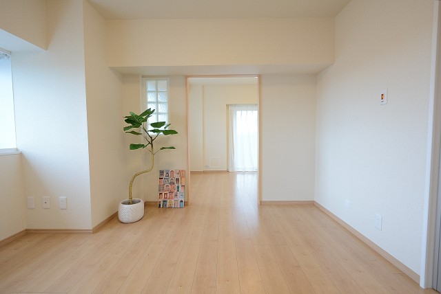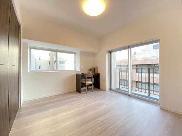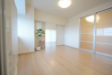こちらは約5.3帖の洋室。南・東の二面採光で明るいのはもちろん、風通しも良さそうなお部屋です。入口が引き戸なのでデッドスペースも出来ず、お部屋のスペースを有効に使うことが出来ますね。