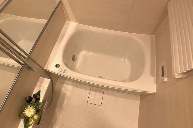 追い焚き機能付きユニットバスは「ふろ自動」ボタンひとつでお風呂を沸かす事が出来ます。そのまま保温もしてくれるので、いつでも温かいお風呂に入れますよ。ご家族でお風呂の時間がバラバラでも大丈夫!