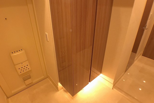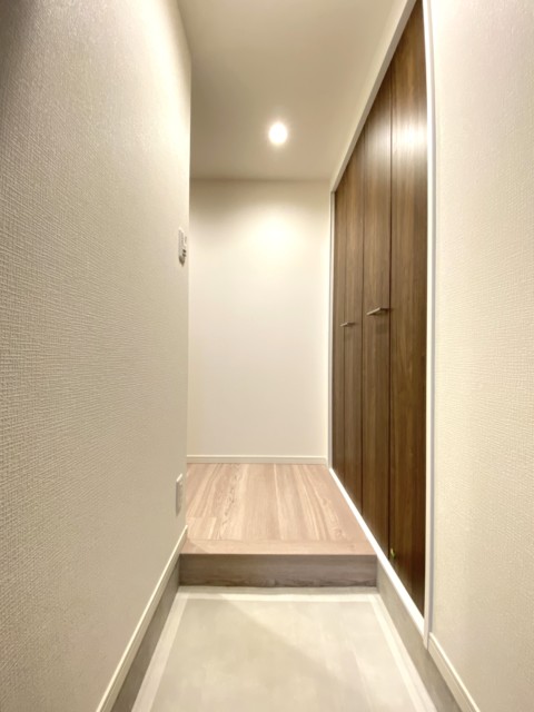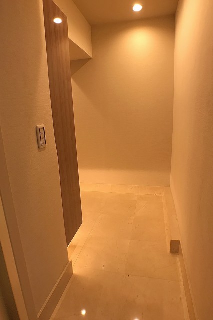 ダウンライトで照らされ、高級感ある玄関となっていました◎