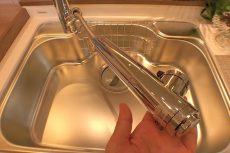 水栓はシャワーヘッドタイプなのでシンクの隅々までお掃除が可能。